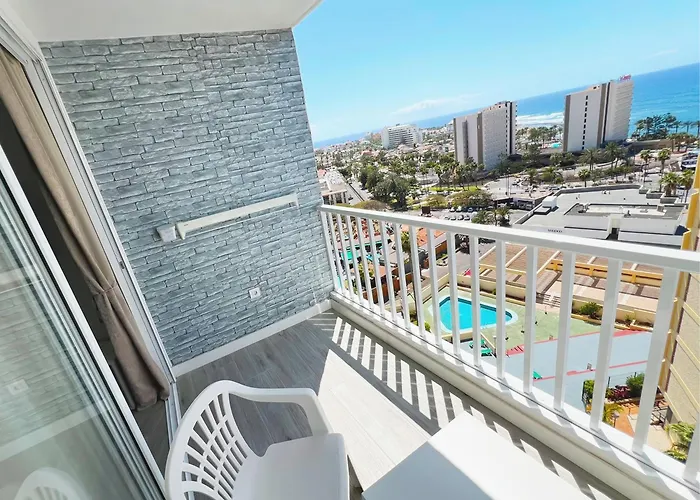 Das 44 m² große Apartamento Frente Mar, Playa De Las Americas liegt an der Strandpromenade und bietet einen Blick auf den Garten. Der Playa de El Bobo lediglich 6 Gehminuten von hier entfernt. Das 1-Zimmer-Apartment bietet eine Terrasse mit einem Swimmingpool mit Blick aufs Meer.